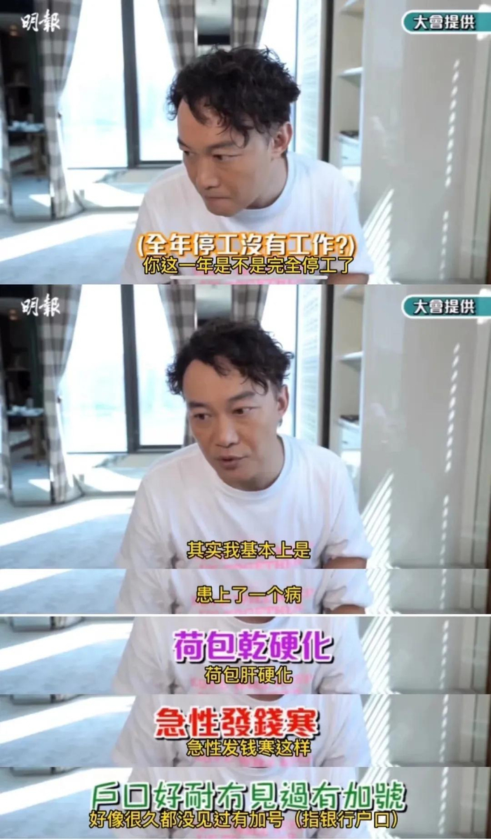 陈奕迅这段采访还曾被以讹传讹成“卡里只剩三千万,心里很慌”,由此引发群嘲。(图/短视频截图荒诞对比所照见的,不仅是财富的鸿沟,更是明星们对普通民众共情能力的消亡。身为公众人物的体面,或许可以先看清自己是踩在红毯上还是站在砂砾上,再决定是否要大声喊疼。