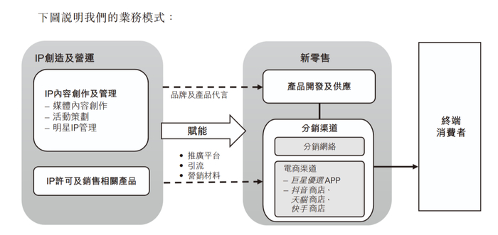 巨星传奇通过周杰伦和刘畊宏等明星的综艺节目、社交媒体来培育IP,与此同时,开发新零售产品,借助明星的IP热度来进行销售。