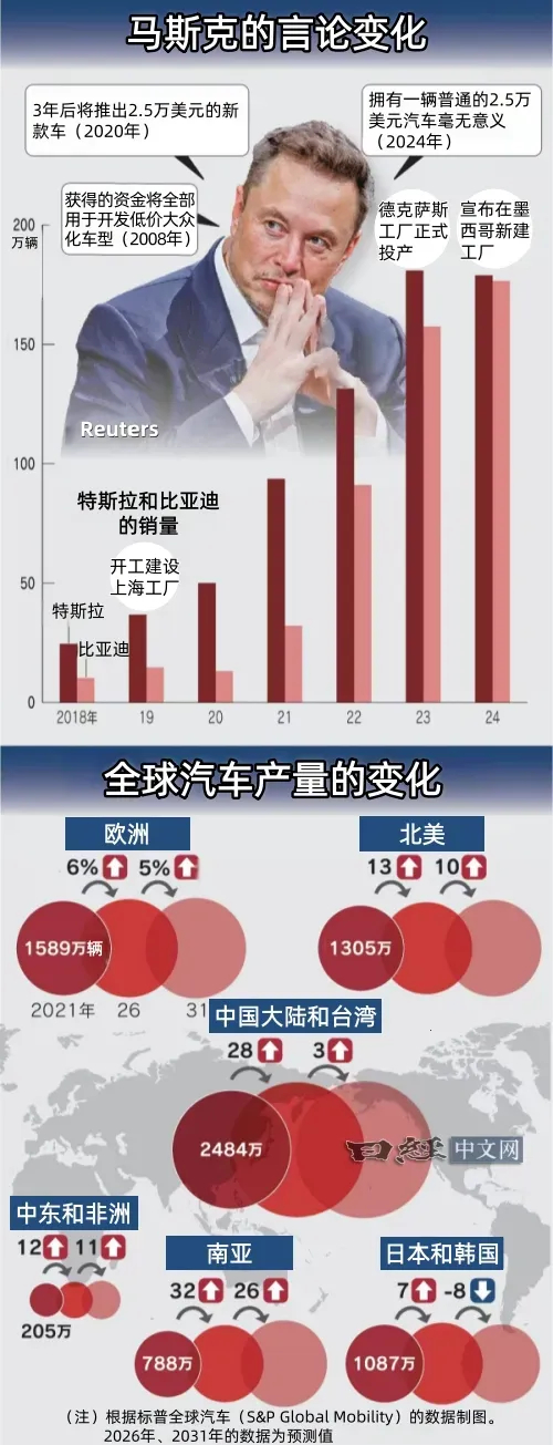 马斯克描绘的新全球战略车型构想是售价2.5万美元的Model 2,突然传出停止开发的消息,背后原因是中国车企的价格竞争力超出预期,利用全球供应链并象征着自由贸易红利的“全球战略车型”正在消失……