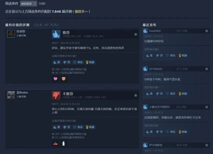 用户评价方面,甚至只能在steam中文区拿到20%-30%的好评,诸如优化不好、匹配机制拉垮、打击感稀烂等批评不绝于耳。而在一个月之后,评价慢慢回升到了褒贬不一的56%。