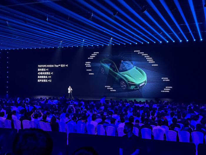 除此之外,小米也在努力提升辅助驾驶的安全等级。在辅助驾驶的硬件配置上,YU7选择了全系标配。包括制程4nm、拥有700TOPS算力的英伟达Thor车载计算平台,以及由1个点云距离达到200米的激光雷达、1个 4D毫米波雷达、11个高清摄像头以及12颗超声波雷达组成的传感器结构。