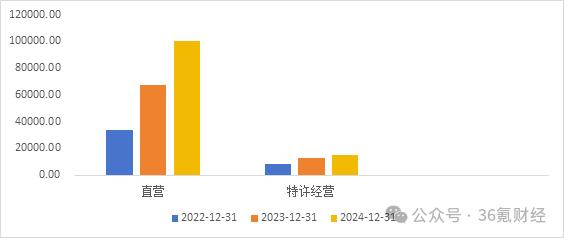 根据招股书披露,2022-2024年,公司直营收入呈现持续扩张且占比连年提升的特征,从3.4亿元扩张至10.1亿元,CAGR为72.3%,同期收入占比则从80.6%升至86.7%;而反观加盟收入却在这期间出现收缩趋势。2022-2024年,加盟商贡献的特许经营及许可管理收入仅从0.8亿元扩张至1.5亿元,CAGR36.9%,收入占比则从19.3%降至13.2%。