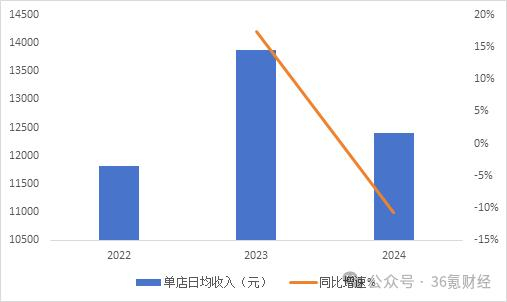 图:遇见小面餐厅数量变化 数据来源:wind,36氪整理因此,可以说,门店尤其是自营门店的加速扩张是近三年遇见小面规模持续扩大的主要原因。但在加速开店的同时,遇见小面的经营效率不仅没有改善甚至出现了一些下滑,从餐厅的经营数据上看,这种趋势非常明显。