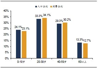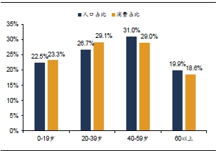 从消费主体的年龄分布看,20-39岁人口是当前的消费主力。