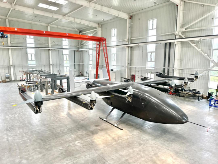 蓝霄航空货运版eVTOL(LX-1)可实现最大起飞重量2.5吨,最大航时超过5小时,续航里程1000公里,最大载重接近一吨。创始人兼CEO王刚介绍,LX-1的全尺寸工程样机已于近日完成总装下线。