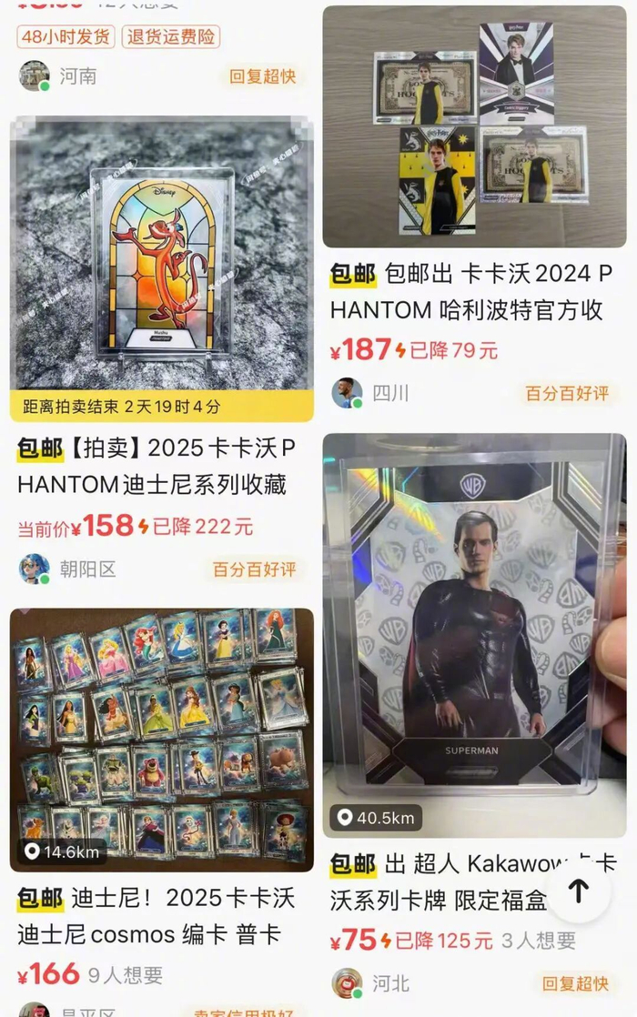 而在二手平台咸鱼上,不少卡卡沃卡牌在大幅降价出售,价格在100元左右。