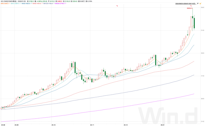 进入2026年以来,贵金属集体大幅走强,黄金则延续了自去年以来加速上涨的强势表现。截至1月30日,主要品种COMEX黄金、伦敦金、沪金的涨幅均在20%左右,虽然短期的爆发力不及白银,但上涨的速度依然飞快。