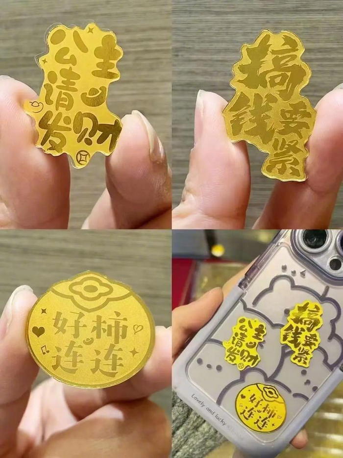 【#金价上涨带动黄金手机贴纸走红#,价格从二三十元到一两百元不等】