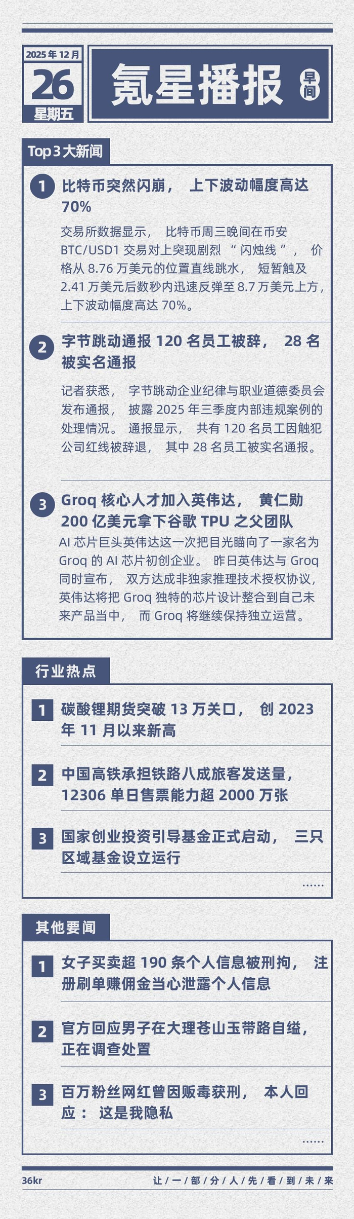 【#氪星播报#|12月26日早间都有哪些#今日大事件#?】