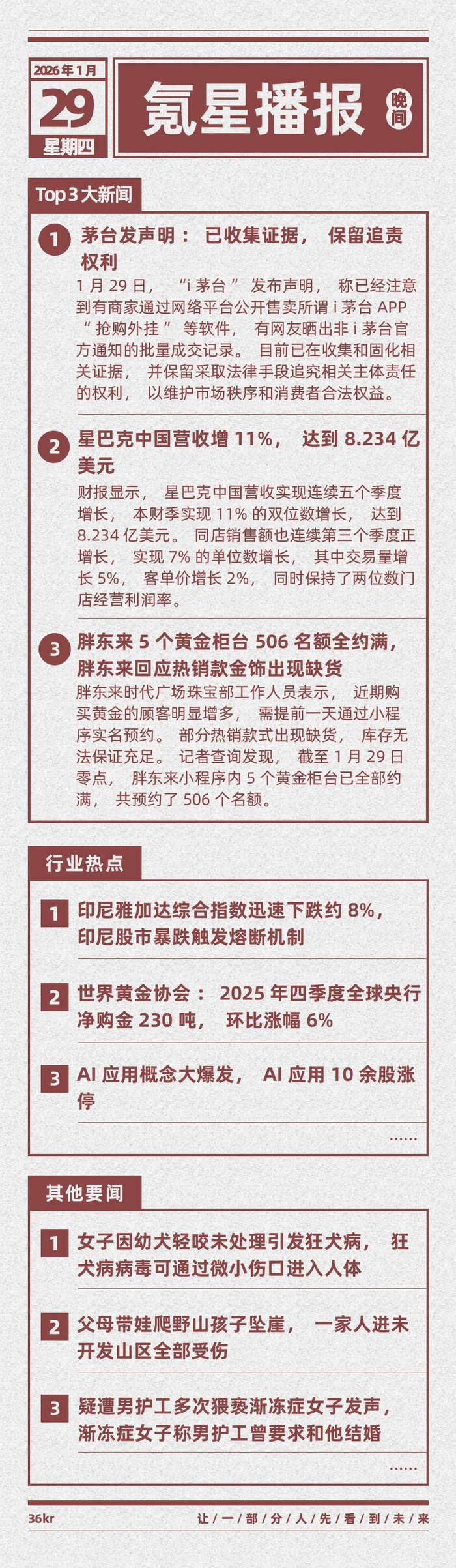 【#氪星播报#|1月29日晚间都有哪些#今日大事件#?】