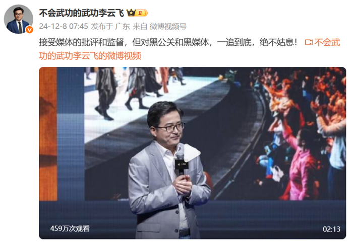 比亚迪品牌及公关处总经理李云飞也曾在多个场合明确表示:比亚迪接受媒体的批评和监督,但对黑公关和黑媒体,一追到底,绝不姑息!