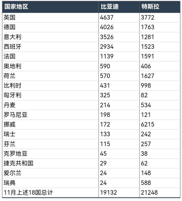 还有意大利,1-11月累计销量为20211辆,同比飙升4878.1%,1-11月累计销量为10,982辆,同比增长202.7%。