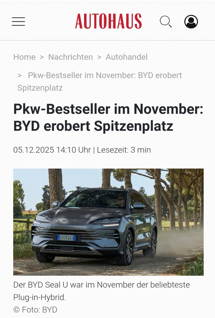 这次比亚迪在欧洲真的杀疯了,旗下的宋PLUS在汽车工业的发源地德国市场,拿下了11月份插电混动车型的销量冠军!