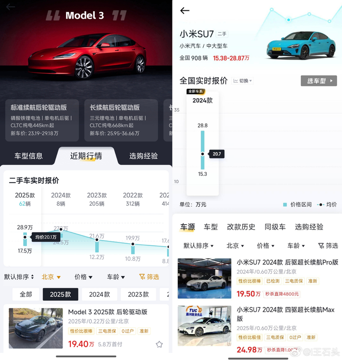 以前大家一提到电动车保值,第一个想到的就是特斯拉,尤其是Model 3和Model Y,但现在这个局面真的在变。