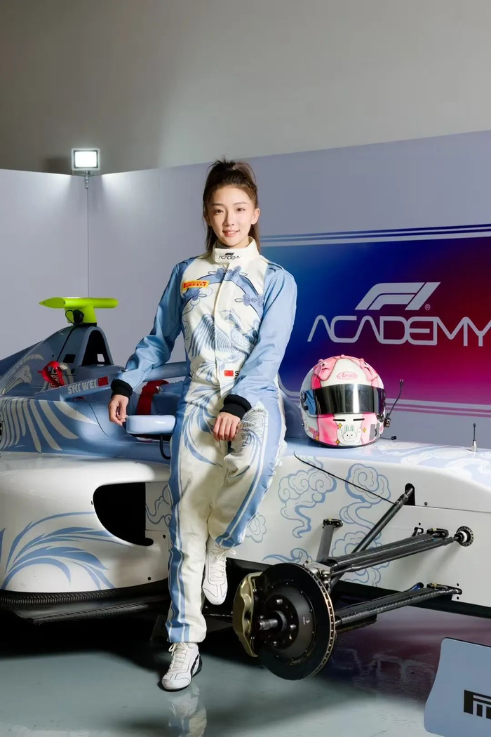 为了即将到来的F1学院中国站比赛,师炜更精心设计了自己的赛车服,设计中融入了中国传统文化元素,如祥云、凤凰等图案,并加入了旗袍的领子与盘扣等充满浓浓中国味的细节,既体现了实用性,又增添了文化韵味。而她的特别版赛车也沿袭了这一设计灵感,整车以青花瓷白为底色,设计上与赛车服相呼应,巧妙融合了凤凰、祥云、盘扣等经典元素。在碳纤维的硬朗质感中,勾勒出流动的东方韵律。
