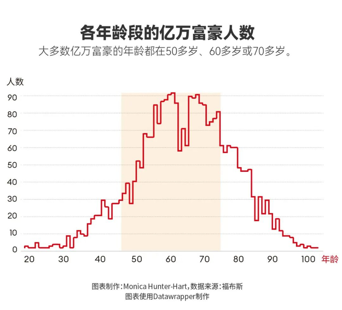 全球近四分之三的亿万富豪年龄在50岁至79岁之间,年龄在50岁以下的仅占12%。在30岁前就成为亿万富豪的人最为稀有——在今年的福布斯富豪榜上,拥有如此丰厚身家的年轻人仅有21位。