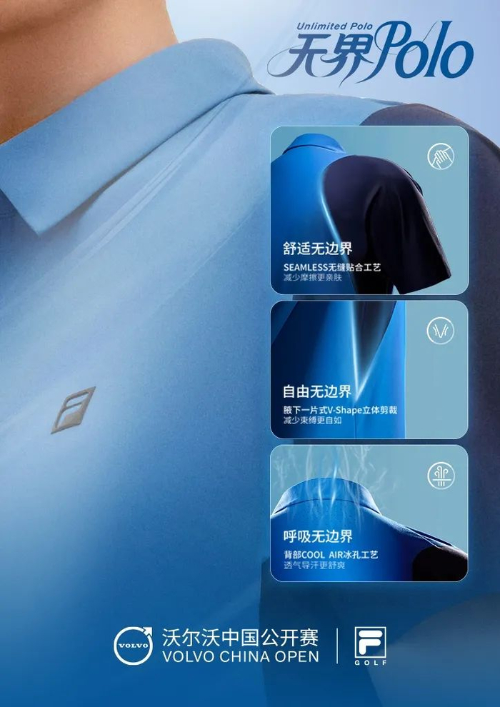 今年,FILA GOLF以绝对的产品力引领行业进阶,核心赛事赞助服装无界POLO也凭借“无界科技”成为焦点。本届赛事,品牌形象代言人许龙一与新星菁英团球员陈子豪身穿定制无界POLO闪耀沃尔沃中国公开赛赛场,展现专业竞技表现。无界POLO拥有“舒适无边界”、“自由无边界”、“呼吸无边界”的三重无界版型科技,赋能穿着者以一件POLO掌控多元主场,打破边界,自成规则。