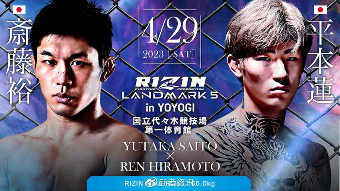 武者网讯 RIZIN雷神笼斗赛事“地标”(LANDMARK)第5期比赛,将于4月29日在日本东京举行。目前官方公布了十场比赛对阵名单。