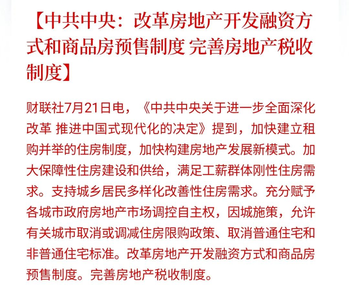 早在去年7月,重要改革决定就已提出,“改革房地产开发融资方式和商品房预售制度”。
