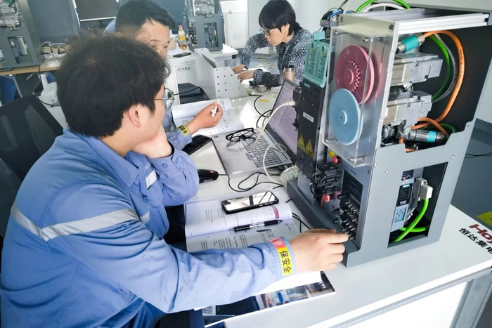 培训摒弃“满堂灌”,采用 “白天学理论,晚上啃案例,全天练操作” 的紧凑模式。学员们常常为了调试一个程序逻辑或定位一个模拟故障点,在设备前反复测试、讨论到深夜。培训后半段,学员们分组挑战了 “模拟智能产线搭建与调试”的综合项目,从方案设计、PLC编程、驱动配置到联调优化,全程实操,将所学知识融会贯通。培训老师严格把关,要求每个参数、每个步骤都精准到位。