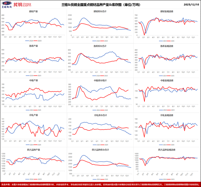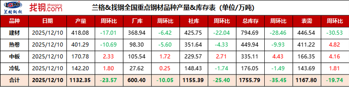 数据显示,钢材产量降幅扩大,库存持续去化,表观消费小幅回落。