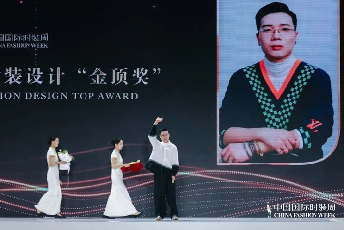 江服日的奖项收获堪称历史性突破:除陈龙的金顶奖外,校友隋振冲获得2025年度最佳女装设计师奖,青年教师成昊凭借蜡染+创新技术获得2025年度中国十佳时装技术奖,在校学生张清修荣获中国十佳职业时装模特称号,江西服装学院荣获2025年度时尚产业推动奖。这一多元化的奖项矩阵,全面印证了江西服装学院人才培养的系统性成果。