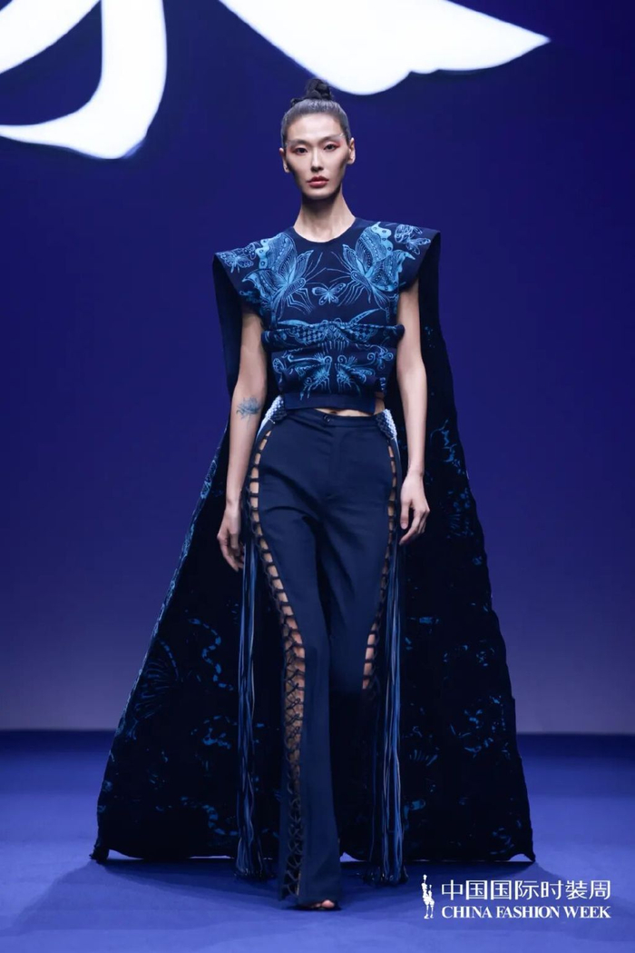 时装周上,还有多位江西服装学院的优秀校友呈现独立大秀,以先锋创意诠释中国时尚的江服力量。冯三三的「三生万物」系列将天然面料、非遗技艺和创新设计相结合,让千年传承展现全新篇章;余康的复古革新系列以复古元素为基底,通过材质碰撞、解构剪裁与符号化点缀,重新诠释经典风格的当代性;吴依诺的且归·去来系列以传统服装形制为基础,用药染和柿染染色,表达质性自然的追求。