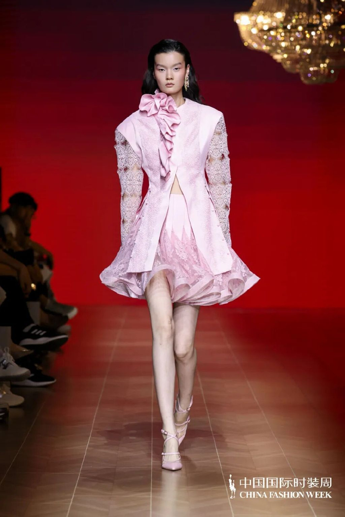 CHEN.1988品牌2026春夏系列理想之秋,通过拼接、抽褶、镂空,以及嫩粉、渐变等色彩创新和蕾丝、透视等立体肌理,构建了完整的价值输出体系——从风格话语权、供应链创新到消费者共识。更值得关注的是,陈龙将产业经验沉淀为可传承的方法论,将市场验证反哺为教学驱动力,实现了真正的教学相长。陈龙详细分享了其独特的“双轨制”教学模式:“在课堂上,我不仅传授设计理论,更将实际项目引入教学。学生们参与从概念构思到成品制作的全过程,这种沉浸式学习方式极大地提升了他们的实践能力。”他坦言:“金顶奖是对产教融合模式的最好肯定。我们证明了学术深度与商业广度可以完美统一,这才是当代中国时尚教育应有的模样。”