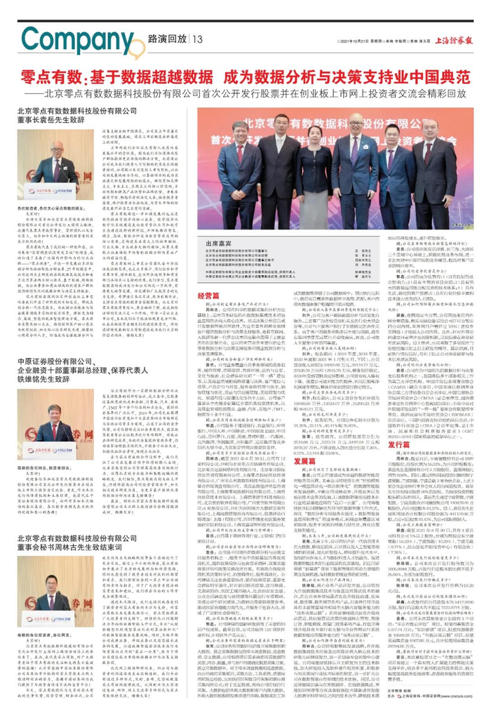 ——北京零点有数数据科技股份有限公司首次公开发行股票并在创业板上市网上投资者交流会精彩回放