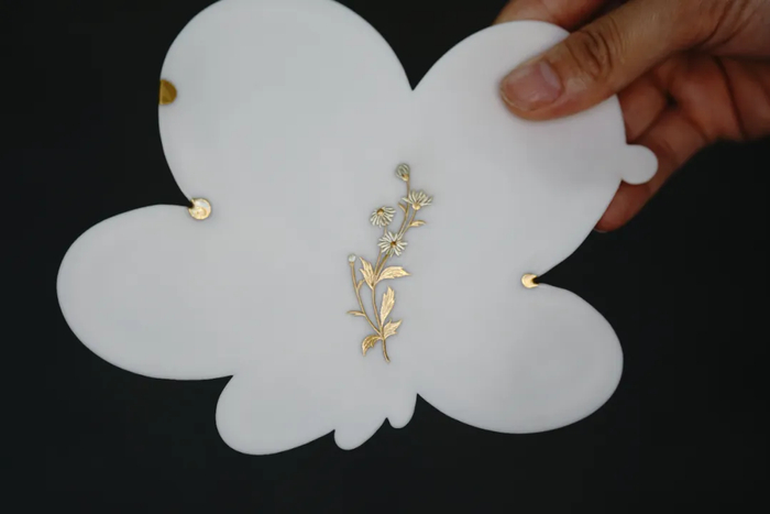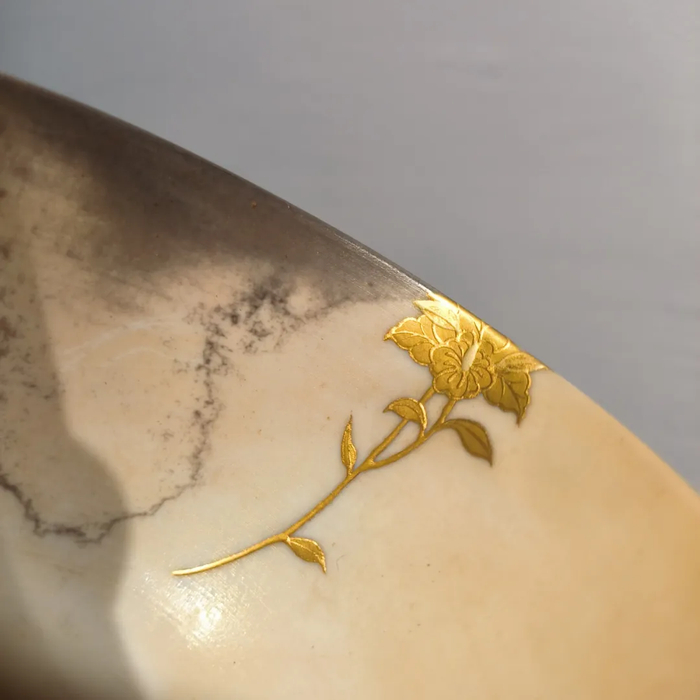 金缮工艺是以天然大漆混合面粉作为粘合剂,粘贴碎片,用漆灰填补缺失部分,塑型并反复打磨至平整,置入固定温度湿度的空间进行阴干。再在漆面将干未干时,敷上金粉或者色粉,最后在荫房中长时间固化。
