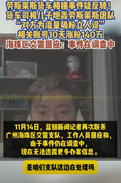 近日,广州一辆货车与劳斯莱斯相撞的事件在网络上持续发酵。该事件中的劳斯莱斯女车主朱根菜因决定不追究货车司机李先生的赔偿责任而被誉为“人美心善”,但她后来连保险费都不要后,却引起不少人质疑,被猜测是是双方为了炒作而自导自演的剧本。对此,货车司机李先生的儿子近日发声,透露了女车主的种种底细,以及更多内幕。