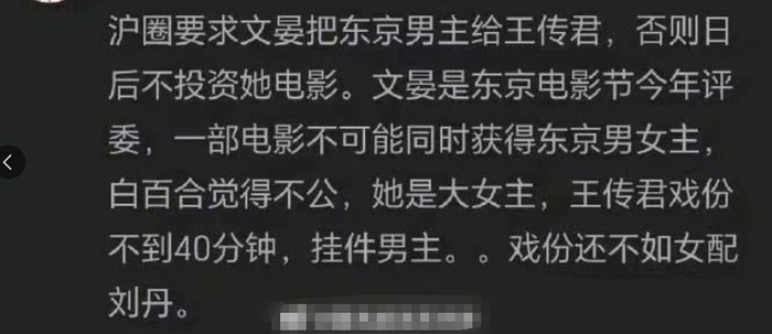也有人透露是沪圈资本逼的文晏要捧王传君。
