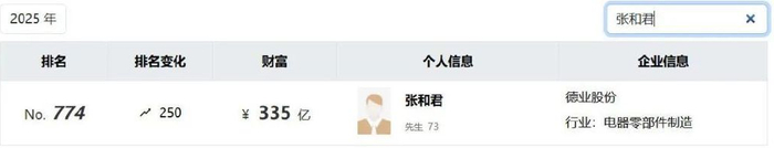 据胡润2025年全球富豪榜,张氏家族身家达到335亿元。