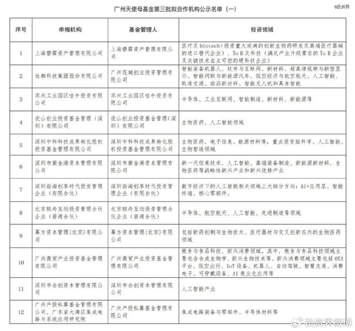 投资界-解码LP获悉,广州天使母基金第三批拟合作机构正式完成公示,进入基金落地阶段。