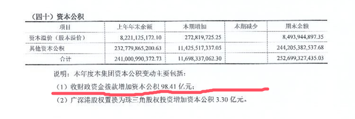 深铁从事带有公益性质的地铁建设,带有明显外部性,因此多年来一直享有财政拨款的待遇。例如,在2023年收到了76亿财政拨款,2024年收到了98亿财政拨款。这些被计入了资产负债表里的“资本公积”项目里,总额占比这两年分别为104%和83%。