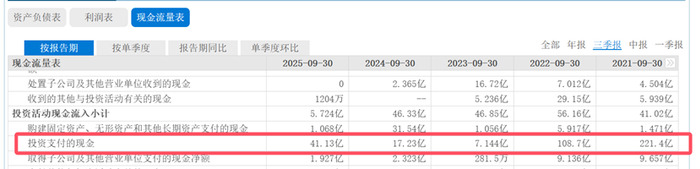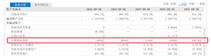 公开数据显示,近五年来保利的长期股权投资数额变化不太明显,从下图(一)可以看出,在2023年9月末达到1114亿的最高峰后,到今年9月末依然有1035亿的规模,仅缩小了7%;并且,下图(二)数据显示,最近两三年新增投资呈现断崖式萎缩,说明类似前些年的表外大规模合作基本停止了,这就表明了现存规模大部分都是历史遗留项目。