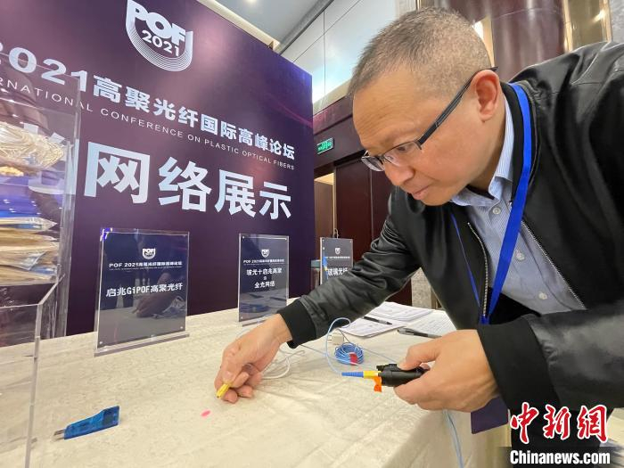 世界高聚光纤协会中国区理事长翁德喜介绍说,高聚光纤是光纤的另一种形式,其渐变指数光纤纤芯的主要成分是一种高新材料全氟高聚合物。“这种光纤易于弯曲,不易折断,而其传输数据的速度却非常高,短距离里可以和玻璃光纤相匹配。”