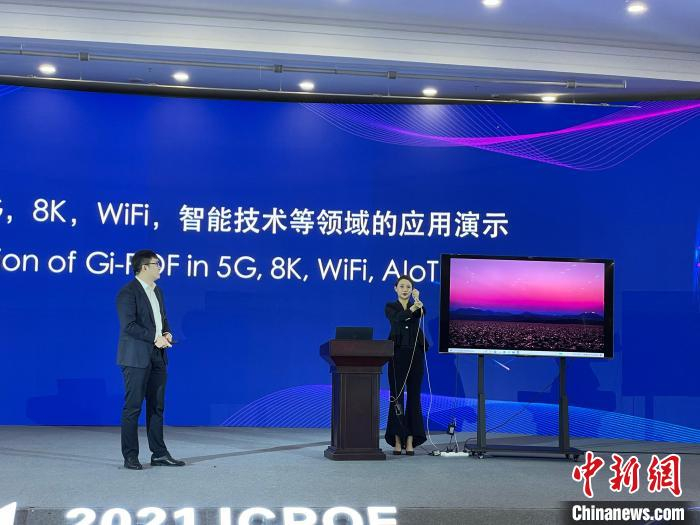 工作人员在论坛上演示了高聚光纤的独特之处:无论如何揉拉正在传输视频信号的高聚光纤,画面始终清晰,信号未受到干扰。