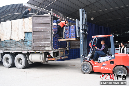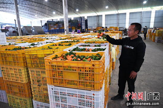 象州县砂糖橘丰收。图为吉星果业仓库一角。