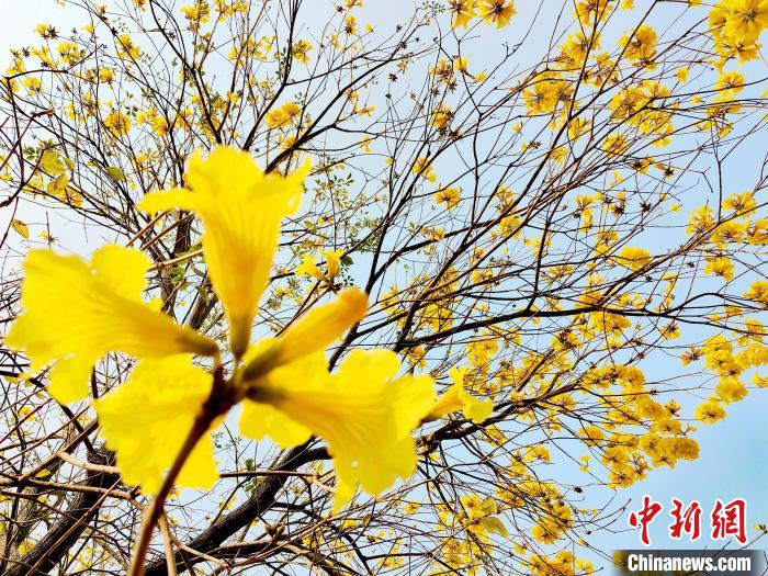 黄花风铃木绽放,满眼都是醉人的“绚丽黄”。 廖源 摄