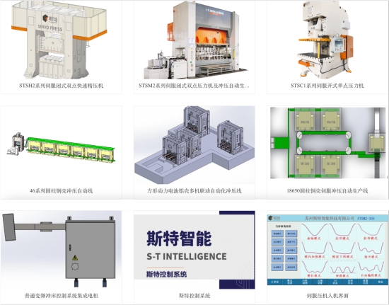 苏州斯特智能已在我国伺服压力机市场中建立了一定的竞争优势,其核心技术包括伺服控制系统底层软件技术、大扭矩伺服电机、主传动结构及特殊专机专利技术等,其中,自研电机、驱动器、控制器技术已达国际一流水准。根据市场现有的常用电机扭矩区段,苏州斯特智能研制了9种商品,在标准化的基础上实现对客户需求的精准覆盖,针对大扭矩低转速电机专门开发的伺服驱动器功率可达400kW,该技术仅有少数国际龙头企业能够实现,属于国内首创。此外,苏州斯特智能自主研发的伺服系统性能显著优于其他国产品牌采用外购或集成的伺服系统产品性能,更加适合如锂电结构件产业对高加工精度的要求。苏州斯特智能以伺服压力机及多机联线切入动力电池结构件制造领域,其制造出的电池壳、顶盖及防爆阀等产品已经获得了锂电池头部厂商的认可。