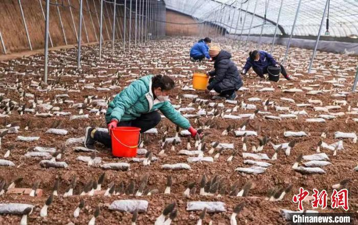 图为村民正在采收羊肚菌。 李红卫 摄中新网长治3月22日电 题:山西屯留设施农业带来特色种植:以前没听过 如今带增收
