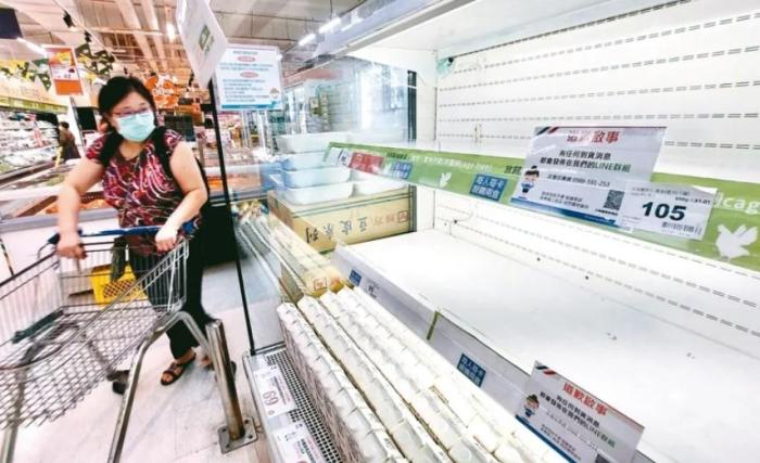 进口蛋陆续在台湾多个超市上架,由于数量有限,刚上架就被一抢而空,民众仍是望着空荡货架兴叹,卖场则是贴出“道歉启事”。图片来源:台湾《联合报》 林俊良 摄