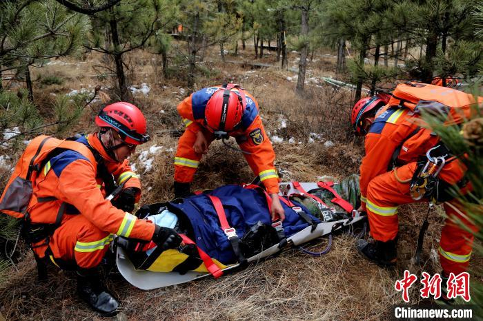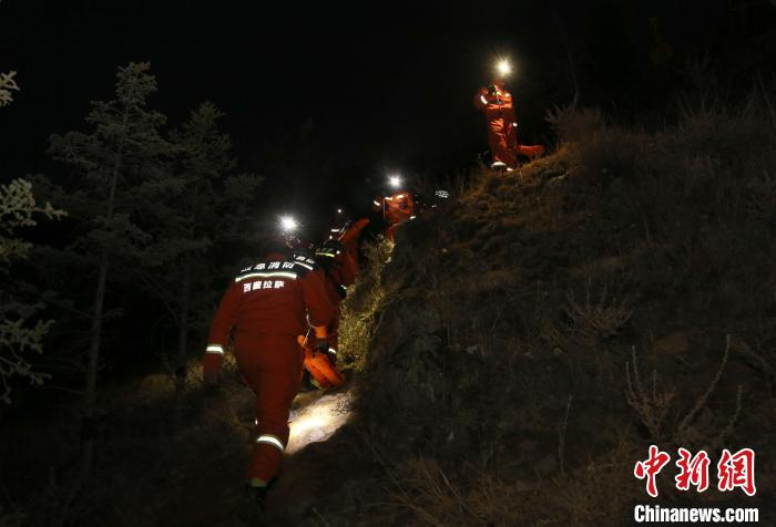 拉萨消防救援支队跨昼夜野外山岳救援实战演练现场。 拉萨消防救援支队供图4月2日,记者从拉萨消防救援支队获悉,近日,该支队在南山公园组织开展2023年度跨昼夜野外山岳救援实战拉动演练。支队灭火救援指挥部、全勤指挥部、国家高山救援拉萨大队及联动医护人员共11车、47人、5犬参加演练,演练跨昼夜持续26小时。
