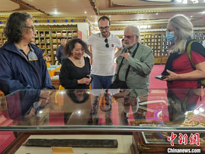 9月20日,外籍专家记者团参观西藏大学图书馆藏文古籍研究所。中新社记者 赵延 摄近日,来自加拿大、挪威、澳大利亚、巴西、阿根廷等国家的外籍专家记者参访团来藏参访。其间,他们分别前往大昭寺、布达拉宫、西藏大学、西藏博物馆、拉鲁湿地等地参观。