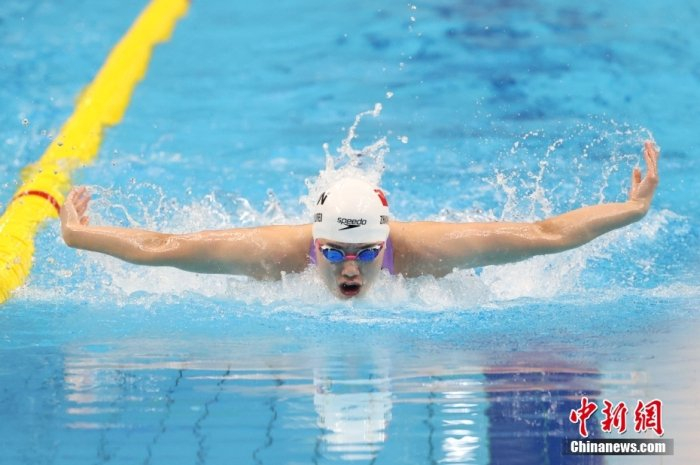 9月27日,杭州第19届亚运会女子100米蝶泳预赛在杭州奥体中心游泳馆举行,中国选手张雨霏以56秒20打破亚运会纪录,晋级决赛。中新社记者 汤彦俊 摄