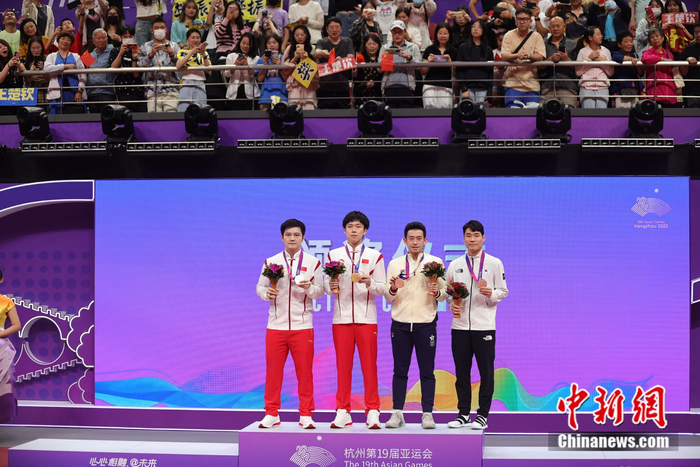 杭州亚运会乒乓球男单颁奖仪式。 蒋启明 摄