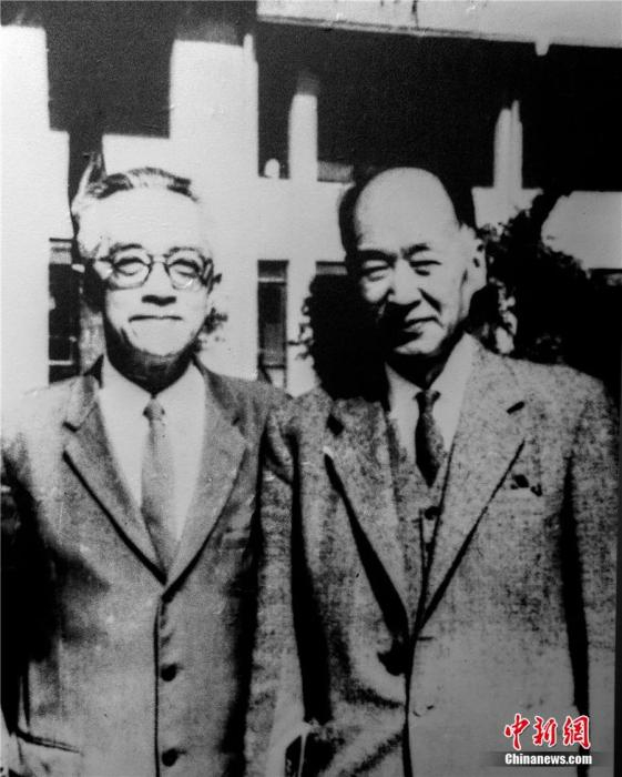 1954年李济(右一)与张光直在台大的照片。钟祥市博物馆供图近日,中新社记者走进李济故乡钟祥,寻访这位考古学名家的足迹。