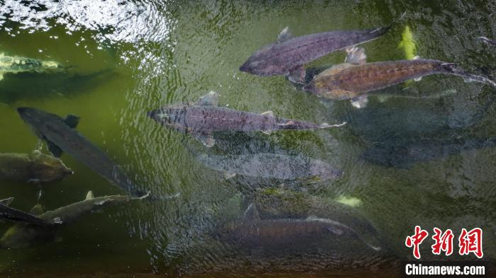中新网宜昌5月18日电 (张倩龙)“最重要的是保住一江清水,我认为生态效益也是鲟鱼产业目前最重要的贡献。”湖北清江鲟鱼谷特种渔业有限公司总经理季坚义17日表示。当天,位于湖北省宜都市的中国清江(宜都)鲟鱼谷养殖车间内,鲟鱼正在水中自在游弋。