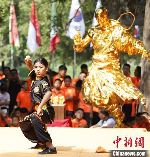 7月14日,2024少林考功总决赛继续在中国嵩山少林寺举行。13日以来,来自47个国家和地区的逾百位少林功夫习练者在此展开比拼,争夺“2024世界少林功夫之星”。以“千年传承,历久弥新;少林文化,人类共享”为主题的是次大赛由少林寺主办。图为参赛选手展示少林功夫。中新社记者 阚力 摄